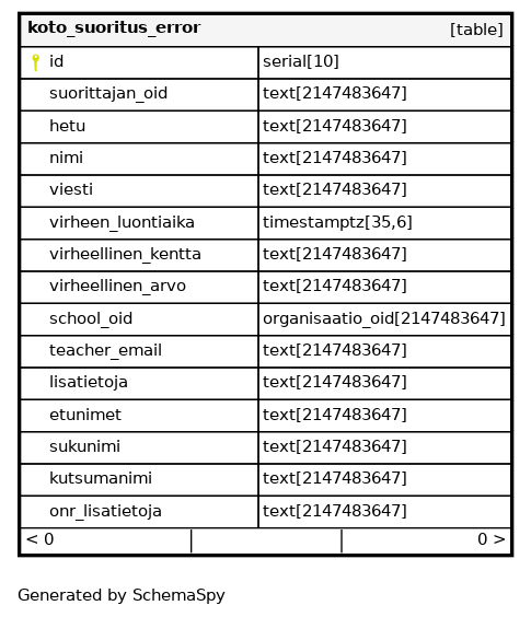 | koto_suoritus_error_pkey | Primary key | Asc | id |