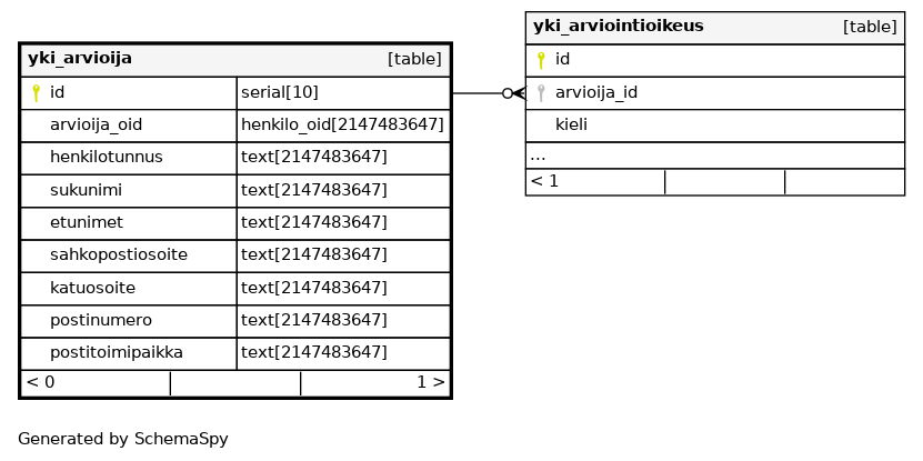 | yki_arvioija_arvioijan_oppijanumero_key | Must be unique | Asc | arvioija_oid |
