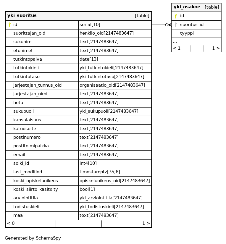 | yki_suoritus_pkey | Primary key | Asc | id |