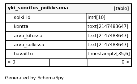 | yki_poikkeama_solki_id_kentta_havaittu_idx | Must be unique | Asc/Asc/Asc | solki_id + kentta + havaittu |